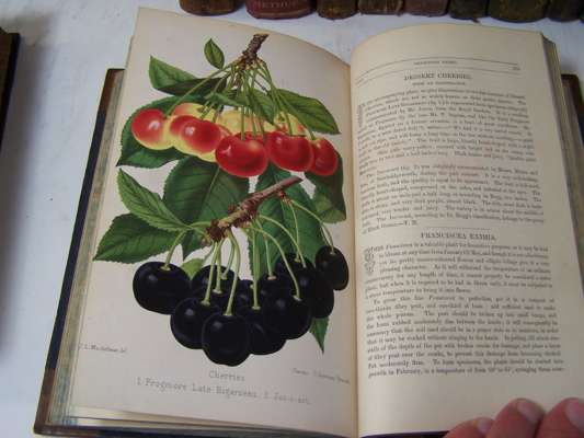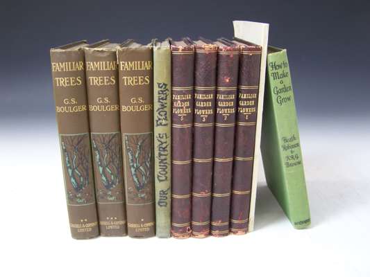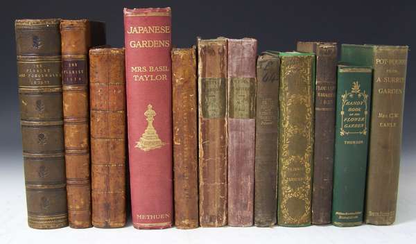 The florist and pomologist. 1876 and 1877. 2 volumes in one, 23 and 24 chromolithographed plates, contemporary green half morocco; Idem The florist and pomologist. 1874. 8vo, 22 chromolithographed and 2 uncoloured plates, contemporary half calf, offsetting to two plates, one hinge cracked, head of spine slightly rubbed; Forsyth, William A treatise on the culture and management of fruit trees. London: T.N. Longman, 1803. 8vo, 12 (of 13) engraved plates, contemporary half calf, some spotting; Marshall, Charles A plain and easy introduction to the knowledge and practice of gardening with hints on fish ponds. London: F.C. & J. Rivington, 1813. 8vo, later half morocco, worn; Murray, C. The British garden. London: T. Wilson, 1808. 2 volumes, 8vo, original boards, uncut, spines repaired, joints weak; Neill, P. The fruit, flower and kitchen garden. Edinburgh: A. & C. Black, 1840. 8vo, illustrations, original cloth, worn; and 15 others on gardens (21)