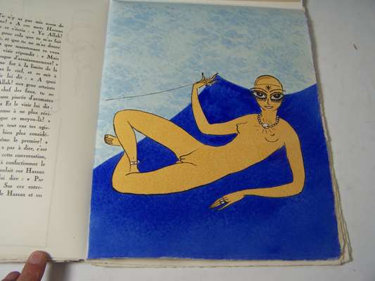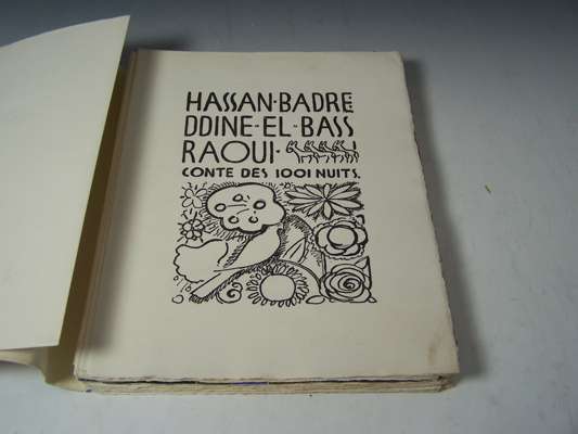 Contes des 1001 nuits. Limited to 310 copies, number 271 of a total edition of 310 copies, one of 200 copies on Velin de Hollande van Gelder Zonen. Paris: Les editions de la Sirène, [1919]. 4to, plates and illustrations by Kees Van Dongen including 4 uncensored plates, 7 coloured by hand, original hand-coloured wrappers, uncut, lacking pages 87-88 including one coloured plate, spine strengthened on verso, wrappers lightly soiled