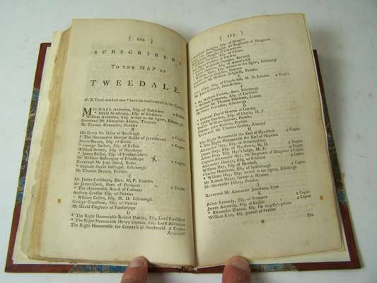 Map of the county of Peebles or Tweedale. Map engraved by S. Pyle after M. J. Armstrong, on 2 sheets joined together, inset plan of Peebles and engraved vignette of Neidpath Castle, 91 x 71cm., [with] A companion to the map of the county of Peebles, or Tweedale, published 20th June 1775. Edinburgh: for the author, [1775]. 8vo, list of subscribers, later half calf, [ESTC T230749], title page soiled and remounted (2)