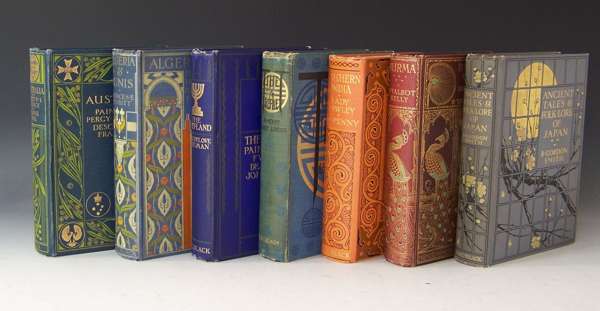 A collection of 39 A. & C. Black 20s. volumes, to include Landor, A. Henry Savage Tibet and Nepal. London, 1905. One of 3000 copies [Inman 81]; Penny, F.E. Southern India. London, 1914. One of 3000 copies, ink stamp on title [Inman 40]; Younghusband, Sir Francis Kashmir. London, 1909. One of 3000 copies [Inman 49]; Menpes, Mortimer The Durbar. London, 1903. One of 5000 copies [Inman 18]; Smith, R. Gordon Ancient tales and folklore of Japan. London, 1908. One of 3000 copies [Inman 47]; Kelly, R. Talbot Burma. London, 1905. One of 3000 copies [Inman 10]; Stokes, Adrian & Marianne Hungary. London, 1909. One of 3000 copies [Inman 37]; Jungman, Nico Holland. London, 1904. One of 3000 copies [Inman 35]; Martin, T. Mower Canada. London, 1907. One of 3000 copies [Inman 12]; Kelman, John From Damascus to Palmyra. London, 1908. One of 3000 copies [Inman 17]; Wright, F. & W. New Zealand. London, 1908. One of 3000 copies, folding map [Inman 60]; and 30 others, mostly first editions, all in publisher's decorative cloth gilt , some slight rubbing; and 5 others. Full list available with Inman numbers. (44)