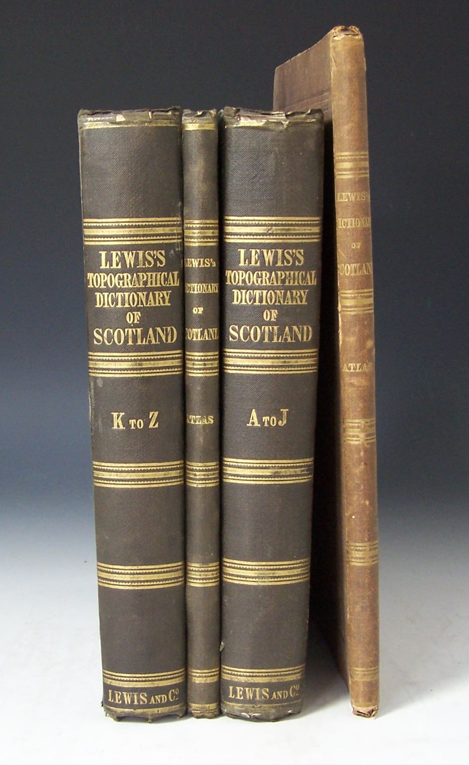 A topographical dictionary of Scotland. London: S. Lewis, 1846; 3 volumes, 4to, large folding engraved map of Scotland in 6 folded sheets, hand-coloured in outline, original cloth; additional Supplementary volume, large folding map of Scotland in 6 folded sheets, hand-coloured in outline, original cloth (4)