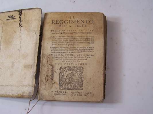 Il reggimento della peste. Venice: Heredi di Melchior Sesia, 1594. 8vo, woodcut on title, contemporary vellum, some dampstaining, erasure to title not affecting text, lacks spine, stitching weak; Mouzé, (-)] Traité de fortifications souterraine, suivi de quatre mémoires sur les mines. Paris: Levrault, 1804. 4to, 20 folding engraved plates, 2 hand-coloured, contemporary half calf, Royal Engineers library stamp on title, corner of title torn away not affecting text, worn; Camden, William Britannia. [London, 1695]. Folio, contemporary calf, lacking title page and all maps, joints cracked (3)
