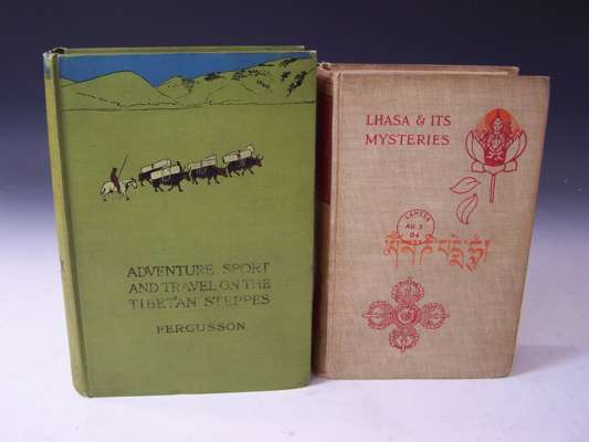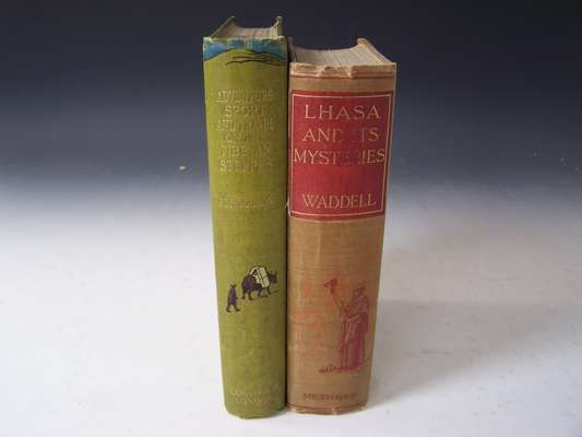 Adventure, sport and travel on the Tibetan steppes. London: Constable, 1911. First edition, 8vo, photogravure portrait frontispiece, 2 folding maps, numerous plates & illustrations from photographs, original decorative cloth gilt; Waddell, L.A. Lhasa and its mysteries, with a record of the expedition of 1903-04. London: Methuen, 1906. 8vo, folding maps, plates, original pictorial cloth (2)