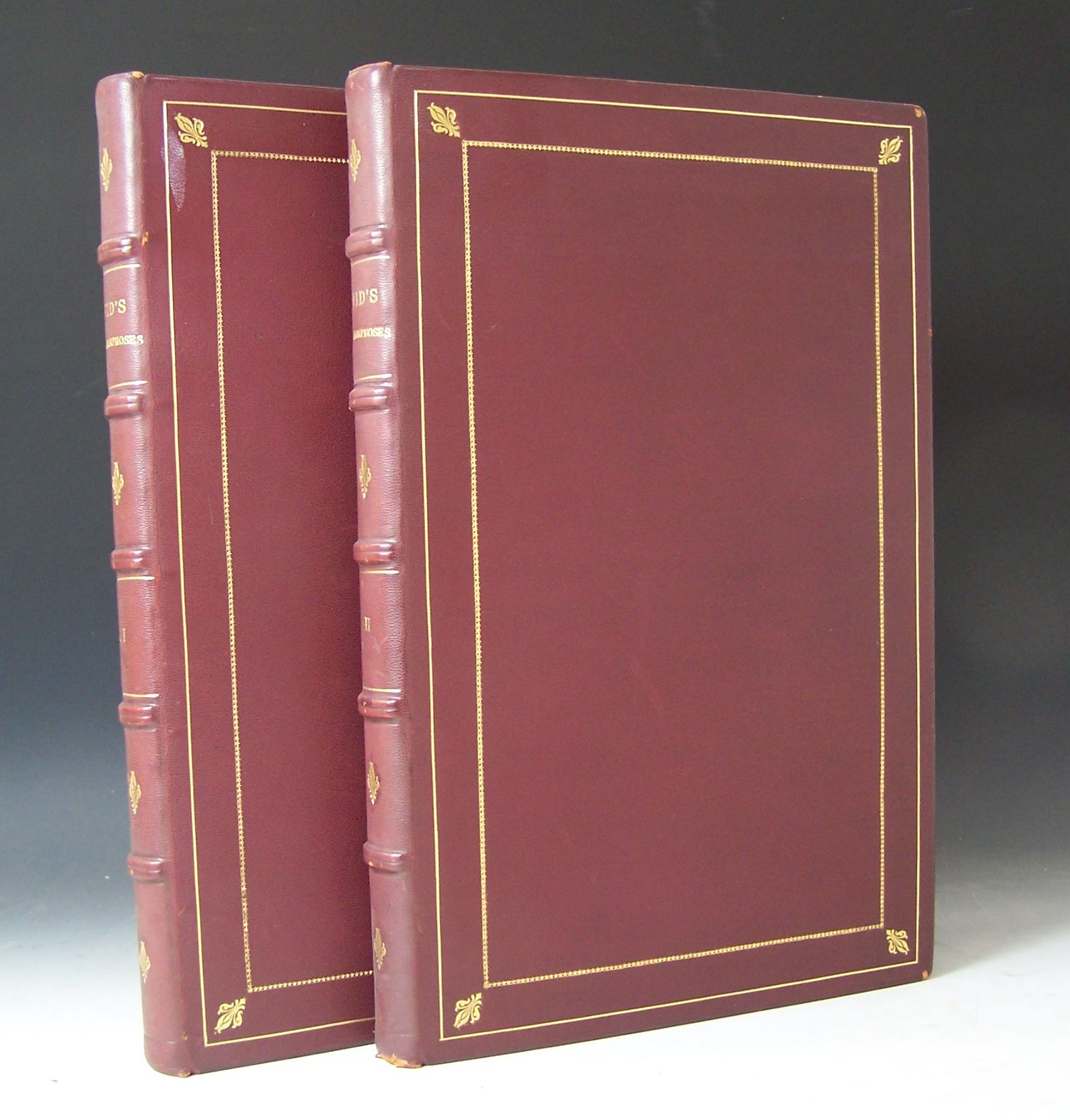 Ovid's metamorphoses in Latin and English... with historical explications... written in French in the Abbot Banier... translated into English. Amsterdam: Wetsteins and Smith, 1732. 2 volumes, folio (458 x 293mm.), parallel Latin and English text, one half-title, title-pages printed in red and black with an engraved vignette, engraved head-piece, 124 engravings in the text and an additional 6 printed on 3 sheets, by Bouche, Folkema, Schenk, Wandelaar and others after Picart, Lebrun, Punt, de Wit and others, woodcut initials, head- and tail-pieces, modern burgundy morocco gilt, [Cohen-de Ricci 768], slight worming in a few lower margins of volume 2, occasional light spotting
