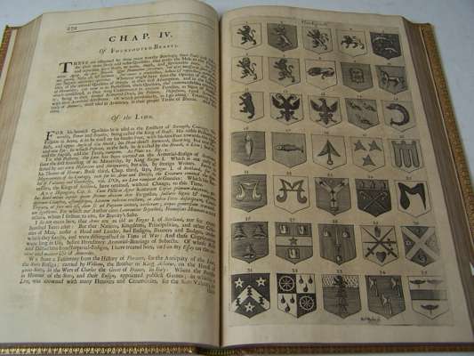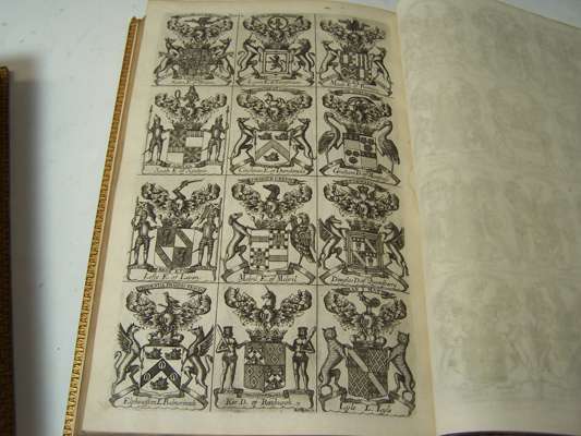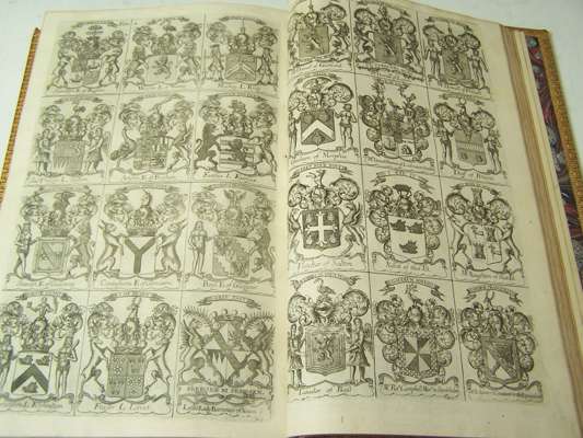 A system of heraldry, speculative and practical. Edinburgh: J. Mackeuen, 1722-42. 2 volumes, folio, titles printed in red and black, 51 engraved plates, period style panelled calf gilt, spines gilt, g.e., brown morocco lettering pieces, two joints slightly cracked