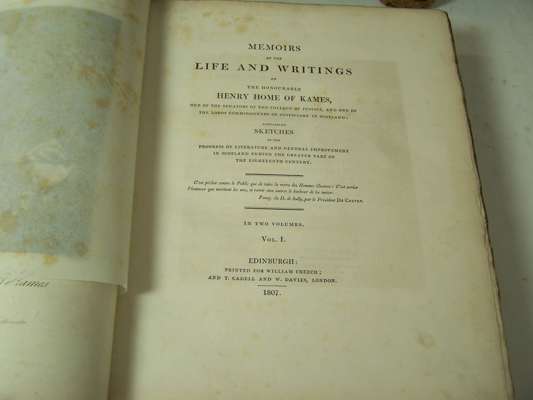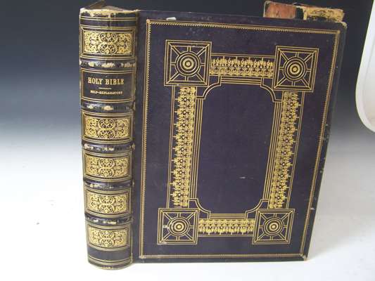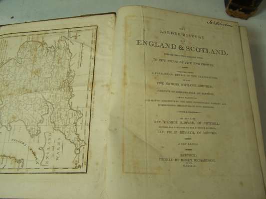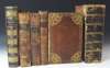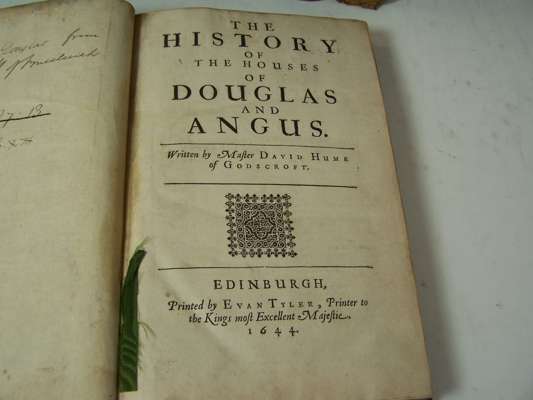 The history of the houses of Douglas and Angus. Edinburgh: Euan Tyler, 1644. 4to, early nineteenth century russia gilt, lacking spine; Idem Another copy. Edinburgh: Euan Tyler, 1644. 4to, contemporary calf, somewhat dust-soiled, rebacked; Home, of Kames, Henry Memoirs of the life and writings. Edinburgh: W. Creech, 1807. 2 volumes, 4to, engraved portrait, contemporary blue half morocco, uncut, rubbed; Ridpath, George The border-history of England & Scotland. Berwick: H. Richardson, 1776. 4to, errata leaf, contemporary half calf, title and both boards detached, worn; [Idem] The border-history of England and Wales. 1810. 4to, folding map, contemporary half calf, worn, upper cover detached; and a William Collins 1865 Bible in maroon morocco gilt (7)