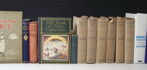 The thirty-fourth division 1915-1919. 1921; Lawrence, T.E. Revolt in the desert. 1927. Third impression, dust-jacket frayed; Graves, R. Lawrence and the Arabs. 1927; Peel, C.S. How we lived then 1914-1918. 1929. Dust-jacket frayed; Glaser, H. Poison. 1937; Stewart, A.M. The history and romance of the Paisley shawl. [N.d.]; Dennys, J. & H. Gordon. Our hospital A.B.C. [c.1919], cloth-backed boards, mostly original cloth; Jane, F.T. Jane's fighting ships 1940. Oblong 4to, hinges weak; Jane, F.T. The world's warships. 1917. Winchester, C. Flying men & their machines. 1916; Stewart, R. The Victoria Cross. [N.d.], spine faded; Churchill, Sir W. The Second World War. 1948-54. 6 volumes, dust-jackets slightly frayed; Ogilvie, D.D. The Fife and Forfar Yeomanry, all original cloth; and 14 others (32)