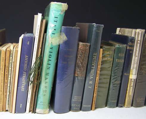 Italian violin makers. 1964. Dust-jacket; Retford, W.C. Bows and bow makers. 1964, dust-jacket; Millant, R. J.B. Vuillaume, sa vie et son oeuvre. 1972; Poidras, Henri Critical & documentary of violin makers. Rouen, 1930. Volume 2 only, plates; Fleming, J.M. Old violins and their makers. 1890. Lacking front endpaper; Giltay, J.W. Bow instruments. W. Reeves, [n.d.]; Morris, W.M. British violin makers. 1904. Plates, lacking plate at p. 146; another edition. 1920. Plates, original cloth; Hart, G. The violin. 1887. Front endpaper loose, spine repaired; Haweis, H.R. Old violin and violin lore. W. Reeves, [n.d.]. Plates; Racster, O. Chats on violins. T.W. Laurie, [c.1920]; Honeyman, W.M.C. Scottish violin makers. [n.d.]. Third edition, original wrappersWoodcock, C. Dictionary of contemporary violin and bow makers. 1965, dust-jacket; all original cloth; and 14 pamphlets or paperbacks, similar; sold as a collection not subject to return (26)