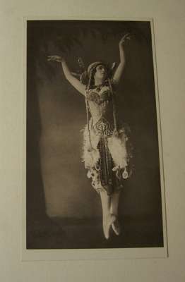 Studies from the Russian Ballet. London: Fine Art Society, [1911]. First edition, folio, 15 photogravure plates (c.20.5 by 14.5cm.), showing Nijinsky, Karsavina, Bolm and Federova, title in red and black, mounted as issued, loose in portfolio, papered boards, gilt-embossed label, table on pastedown, backstrip defective, staining to title
