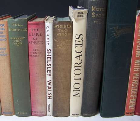Combat. 1933; Lyndon, B. Grand prix. 1935; Davis, S.C.H. Motor racing. [N.d.]. Third edition; Jarrott, C. Ten years of motors and motor racing. 1928; Monkhouse, G. Motor racing with Mercedes-Benz. [N.d.]; Speed [Magazine], 1935-6. Nos. 1-12, in original folder; Monkhouse, G. Motoraces. [N.d.]; Motor sport. 1932. 4to, volume 8, original cloth; Edge, S.F. My motoring reminiscences. [N.d.], Foulis, dust-jacket; Chula of Siam, Prince Road racing 1936. For private circulation, 1936. Dust-jacket; Grahame-White, M. At the wheel ashore and afloat. [N.d.], original pictorial cloth; Eyston, G. & W.F. Bradley Speed on salt. 1936. 4to, dust-jacket; and 11 other volumes, & a few copies of Speed magazine (quantity)
