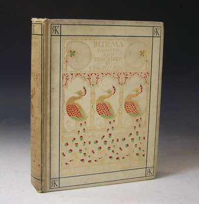 Wanderings in Burma. Bournemouth & London: F.J. Bright & Son, 1897. First edition, 4to, frontispiece, 20 maps & plans [including folding map in pocket at rear], plates, original green cloth gilt, small scratch to upper board, some bumping to corners, interior clean; Kelly, R. Talbot Burma. London: A. & C. Black, 1905. 4to, number 22 of 300 copies, signed by Kelly, colour plates, original decorative cream cloth gilt, backstrip discoloured (2)