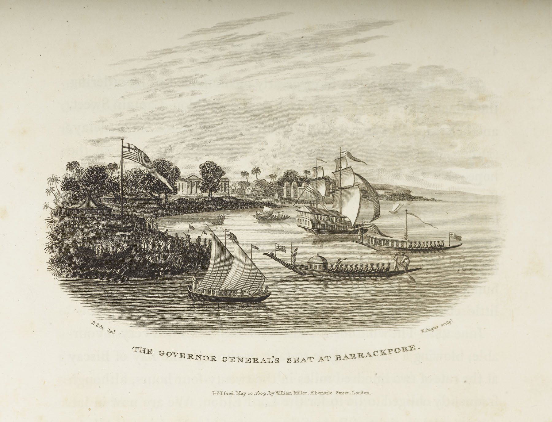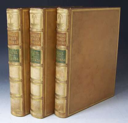 Voyages and travels to India, Ceylon, the Red Sea, Abbyssinia and Egypt in the years 1802, 1803, 1804, 1805, and 1806. London: William Miller, 1809. 4to, 3 volumes, [iii-vi, [8], 496; iv, 520; [2], iv, 506], volume I lacking half title, 65 plates [some folding], 4 folding maps [linen backed], 19th century calf gilt by Robert Seton, brown and green labels, Northern Light Board gilt stamp to backstrip, some fading to backstrips, foxing to plates (3)