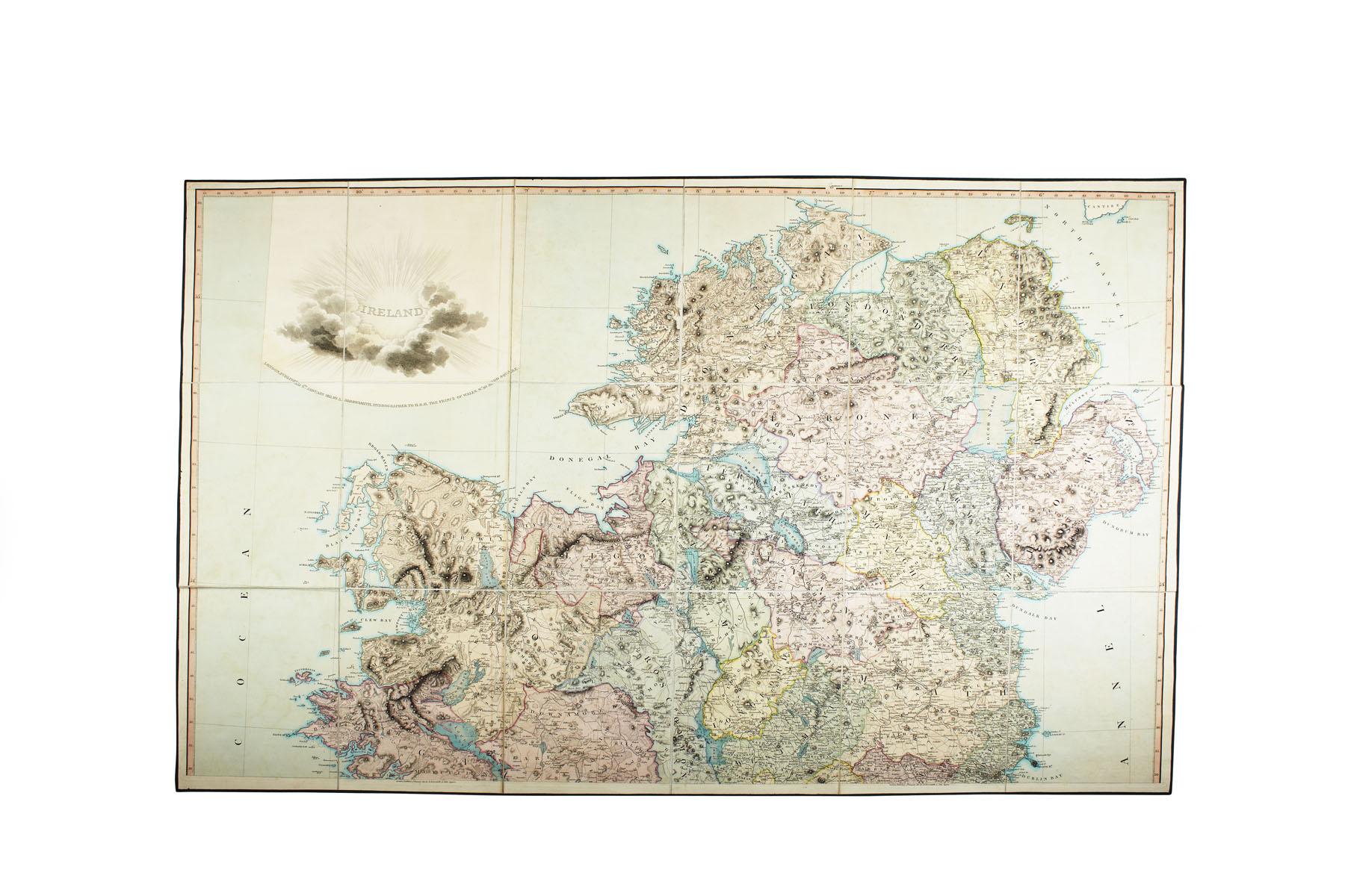 Ireland. London: A. Arrowsmith, 1811. Hand-coloured engraved map, dissected and backed on linen, edged in green silk, in two sheets, each sheet 94 by 147cm., contemporary half calf box, green ties, box slightly rubbed