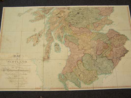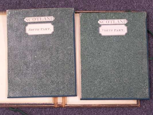 Map of Scotland constructed from original materials obtained under the authority of the Parliamentary Commissioners for making roads and building bridges in the Highlands of Scotland. London: A. Arrowsmith, 1807. Hand-coloured engraved map, dissected and backed on linen, in 2 sheets, each sheet 940 x 1460mm., contemporary half calf box, some slight spotting and slight offsetting, box rubbed