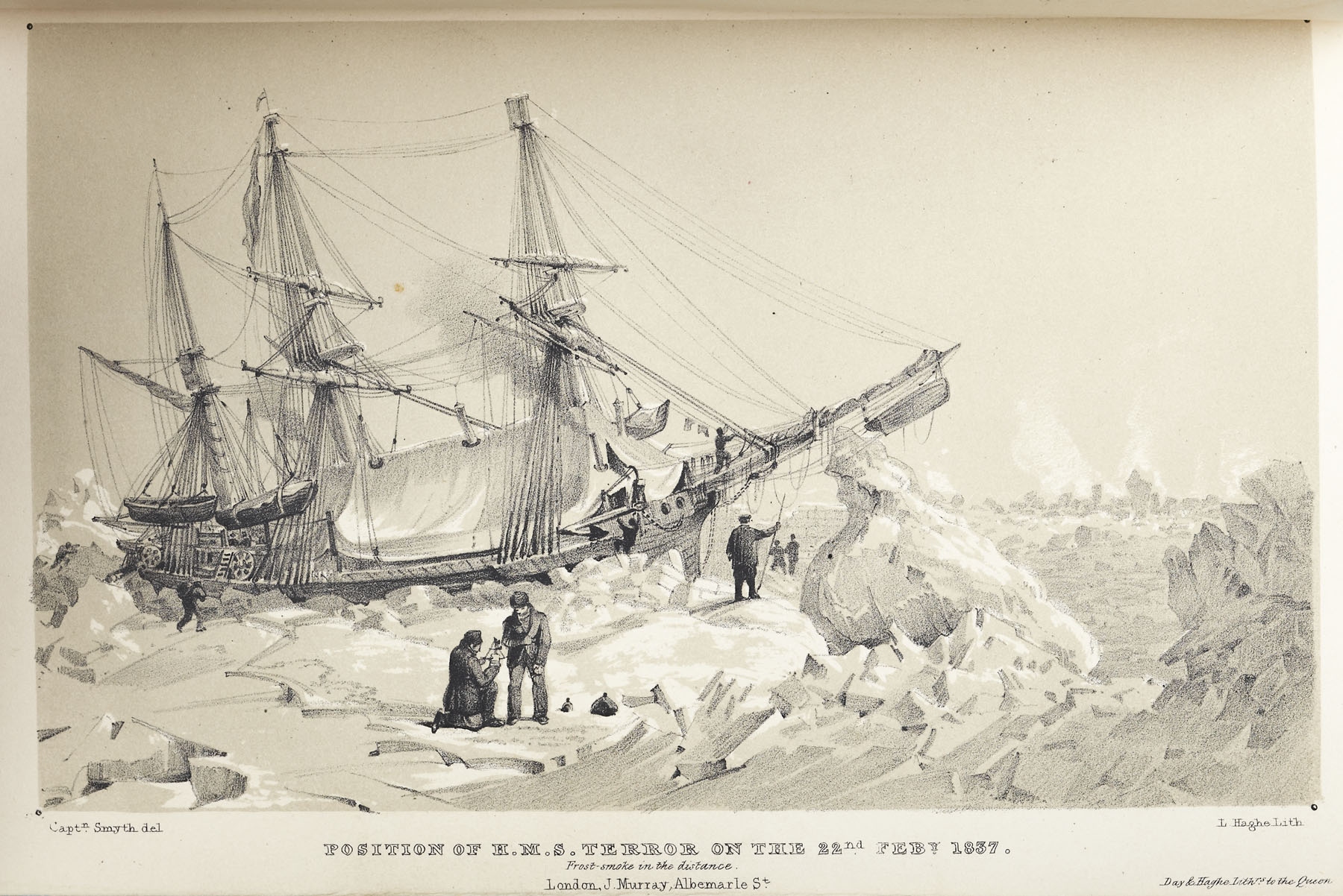 Narrative of an expedition in H.M.S. Terror, undertaken with a view to geographical discovery on the Arctic shores, in the years 1836-7. London: John Murray, 1838. 8vo, [viii, 456], 12 lithographed plates, folding map laid down on linen, contemporary calf, spine gilt, Northern Light Board gilt stamp at head of spine