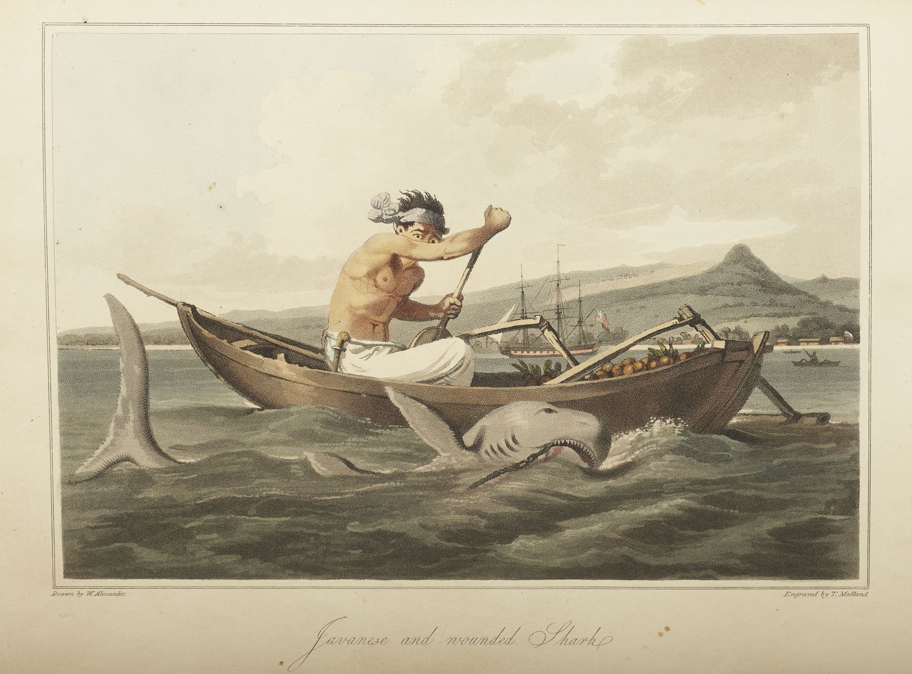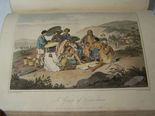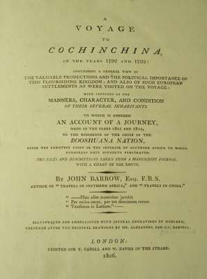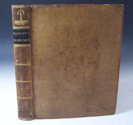A voyage to Cochinchina in the years 1792 and 1793. London: T. Cadell and W. Davies, 1806. First edition, 4to, [xviii, [ii], 447], double-page map, double page chart and 18 (of 19) hand-coloured aquatint plates, contemporary calf, Northern Light Board giltstamp at head of spine, lacks plate 1 [Funchal]