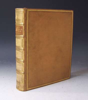 Narrative of travels and discoveries in Northern and Central Africa in the years 1822, 1823 and 1824. London: John Murray, 1826. First edition, 4to, [xlviii, 335, [4], 269, [3]], 37 engraved plates of which one is coloured, 1 folding map, 19th century calf gilt by Robert Seton, Northern Light Board gilt stamp to backstrip, marble endpapers, some rubbing to backstrip, some mild offsetting from plates