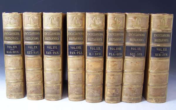 Dictionary of arts, sciences and general literature. Edinburgh: Adam and Charles Black, 1842. Seventh edition, 4to, 21 volumes, engraved plates and maps, contemporary calf gilt, black and brown labels, Northern Light Board gilt stamp to backstrip, rubbing to edges, hinges cracking. Sold not subject to return (21)