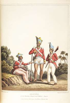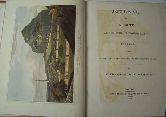 Journal of a route across India, through Egypt to England in the latter end of the year 1817, and the beginning of 1818. London: John Murray, 1819. First edition, 4to, [iii-xxiv, 502, [v], 7 maps and plans (one folding), 12 plates (9 hand coloured aquatints after Fitzclarence), 19th century calf gilt, Northern Light Board gilt stamp to backstrip, slight offsetting, mainly from plates to text, lacking half title