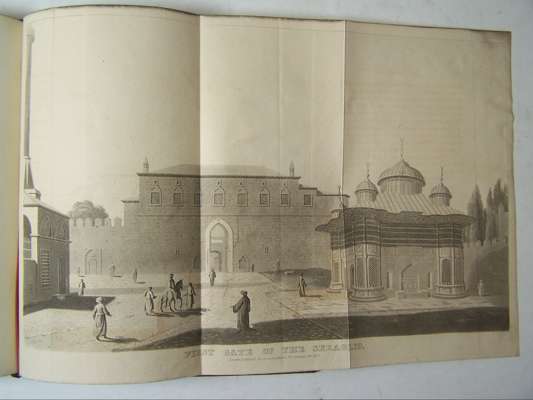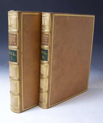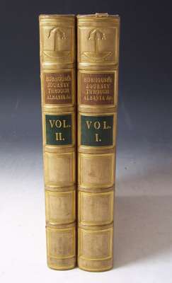 A journey through Albania, and other provinces of Turkey in Europe and Asia, to Constantinople, during the years 1809 and 1810. London: James Cawthorn, [1813]. Second edition, 2 volumes, 4to, [xvi, 628; [ii], 629-1152, [ii], engraved frontispiece, 2 folding maps laid down on linen, 17 uncoloured aquatint plates (7 folding and laid down on linen), 2 plates of engraved music, nineteenth century calf gilt, Northern Light Board gilt stamp at head of spines, slight offsetting to plates or text, tear to p.743 repaired