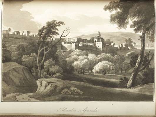Travels in the South of Spain in letters written A.D. 1809 and 1810. London: J. Johnson & Co., 1811. First edition, 4to, [iii-xiii, [2], 407, 36, [7]], folding map, 12 uncoloured aquatint plates, one folding, later 19th century calf gilt, Northern Light Board gilt stamp to backstrip, some offsetting from plates [especially to title], lacking half title