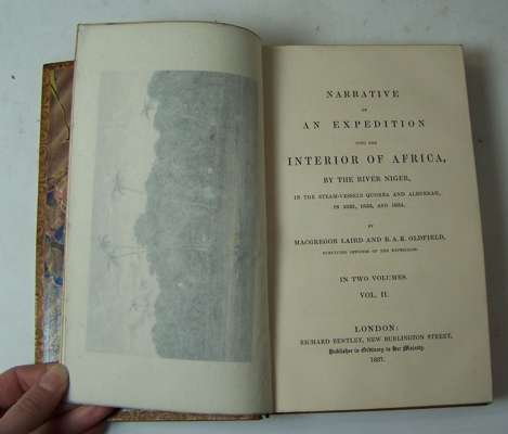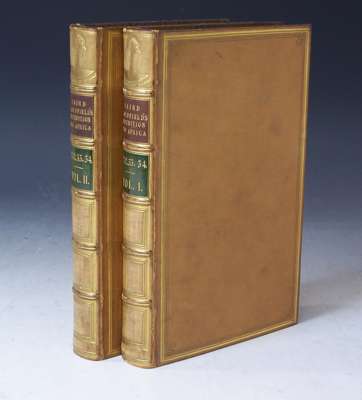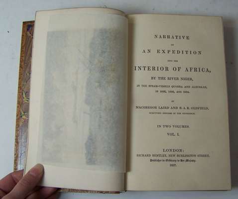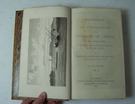 Narrative of an expedition into the interior of Africa by the River Niger... London: Richard Bentley, 1837. 8vo, 2 volumes, [xv, 451; vii , 447], 7 maps and plates as per list, 19th century calf gilt by Robert Seton, red and black labels, Northern Lighthouse Board gilt stamp to backstrips, interiors clean (2)