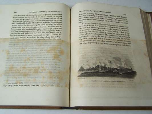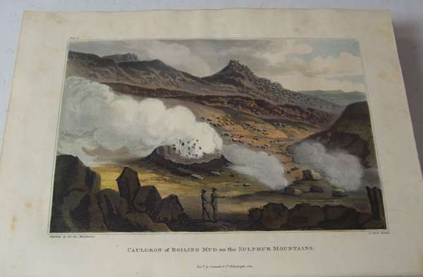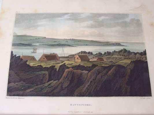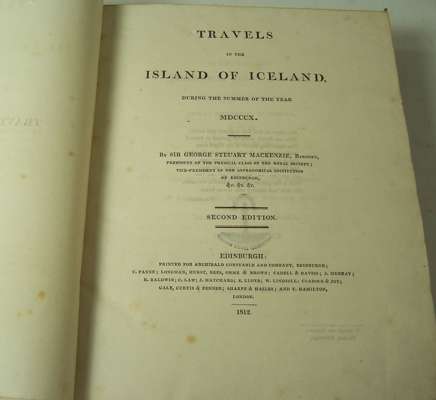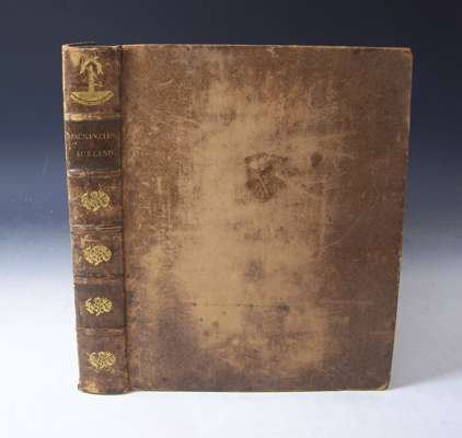 Travels in the Island of Iceland, during the summer of the year MDCCCX. Edinburgh: A. Constable, 1812. Second edition, 4to, [xvi, [iv], 492], 2 maps (1 folding and hand-coloured in outline), 15 plates including 8 hand-coloured aquatints, 4 folding tables, engraved vignettes, half-title, contemporary calf, Northern Lighthouse Board stamp on title verso and gilt stamp at head of spine, somewhat spotted, slight offsetting to a few plates, lower joint cracking
