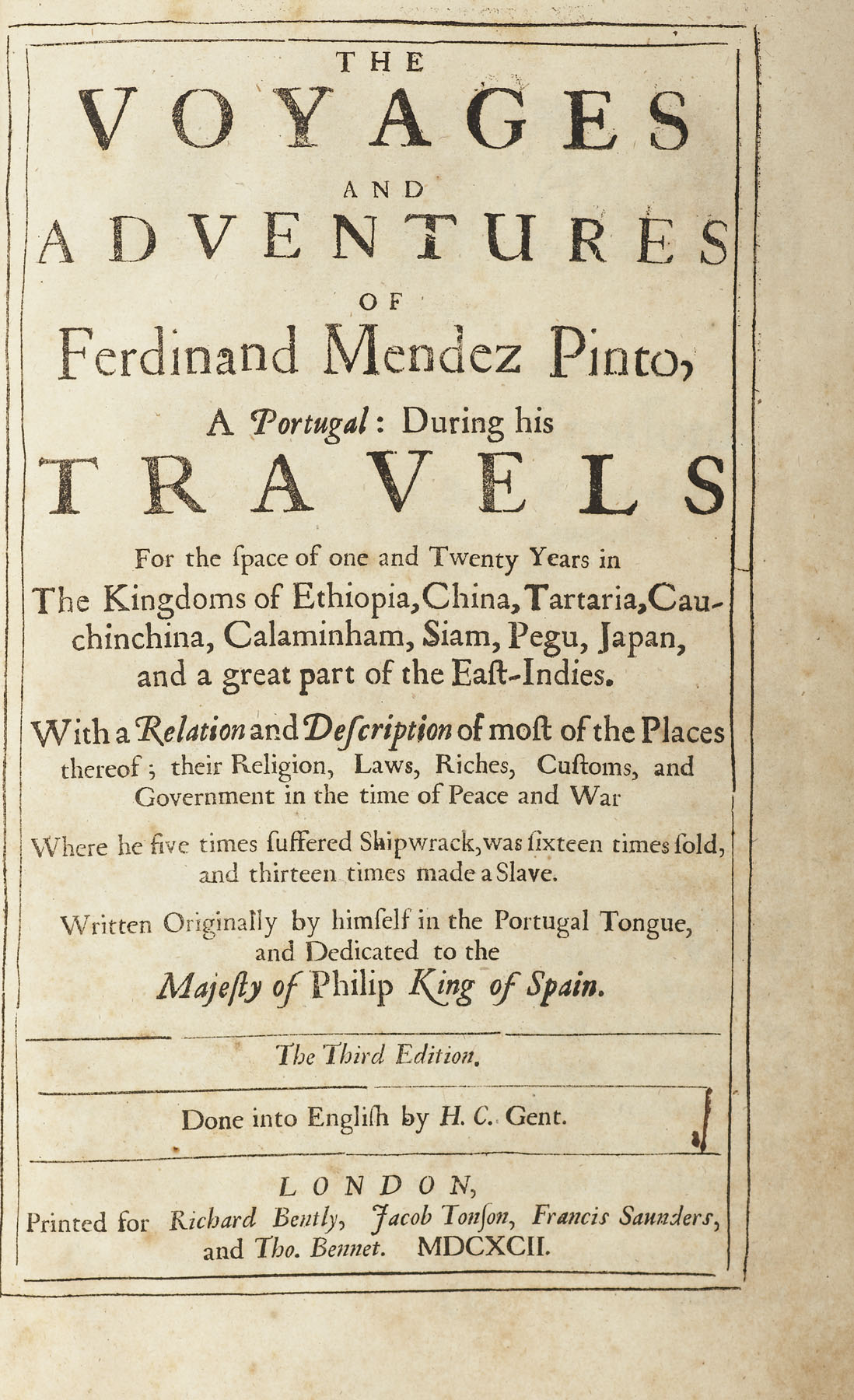 The voyages and adventures of... London: Richard Bentley, [&c.], 1692. Third edition, 4to, [[14], 326], translated by H.C. Gent, 19th century calf gilt by Robert Seton, Northern Light Board gilt stamp to backstrip, 19th century endpapers, some ink marginalia