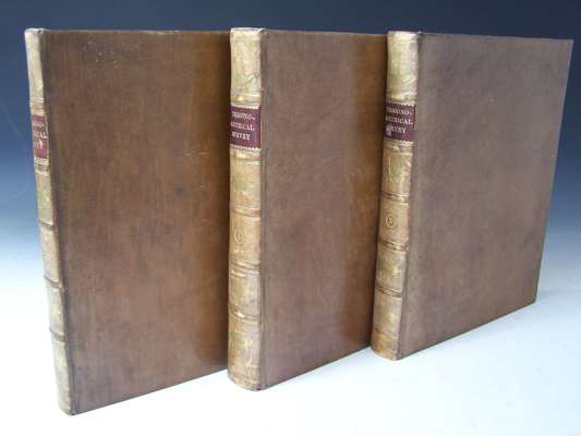 An account of the operations carried on for accomplishing a trigonometrical survey of England and Wales. London: W. Faden, 1799-1801. First edition, 4 parts in 3 volumes, 4to, [iii-xxii, 437; x, 190; vi, 128; xvi, 382, [ii]; 51 folding engraved plates, engraved dedication, contemporary calf, spines gilt, Northern Lighthouse Board gilt stamp at head of spines, volume 1 lacks half-title (3)