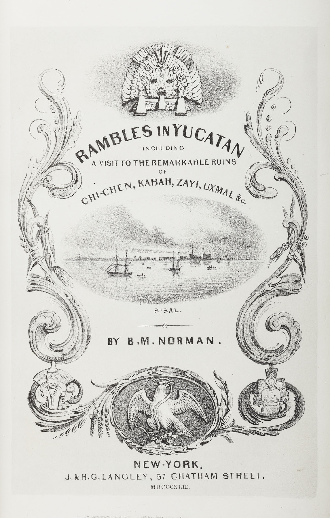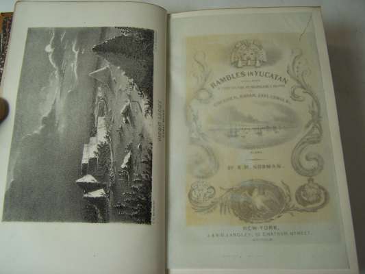 Rambles in Yucatan, or notes of travel through the peninsula. New York: J. & H.G. Langley, 1843. Second edition, 8vo, [304], additional lithographed title, map and 24 engraved or lithographed plates, wood-engraved vignettes in the text, contemporary calf, Northern Lighthouse Board gilt stamp at head of spines