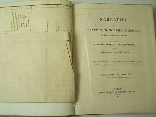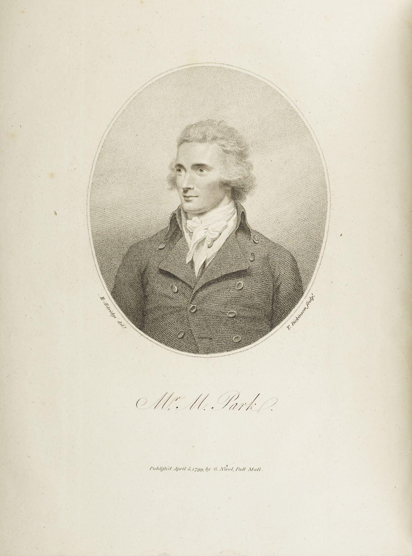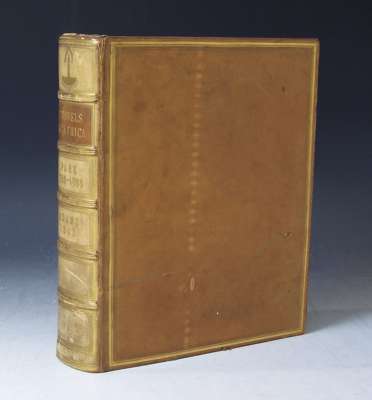 Travels in the interior districts of Africa. London: printed by W. Bulmer for the authors, 1799. Second edition, 4to, [iii-xxviii, 372, xcii], portrait frontispiece, 3 folding maps [linen backed], 5 plates, [bound with] The journal of a mission to the interior of Africa in the year 1805. London, 1815. 4to, [[10], cxxx, [1], 219], folding map frontispiece [linen backed], [bound with] The narrative of Robert Adams, a sailor, who was wrecked on the Western coast of Africa, in the year 1810... London, 1816. 4to, [xxxix, 231], folding map frontispiece [linen backed]; bound in 19th century calf gilt, Northern Light Board gilt stamp to backstrip, some fading to backstrips, scuffs to boards