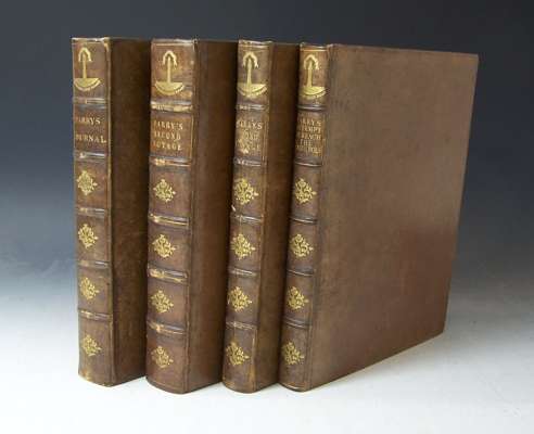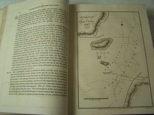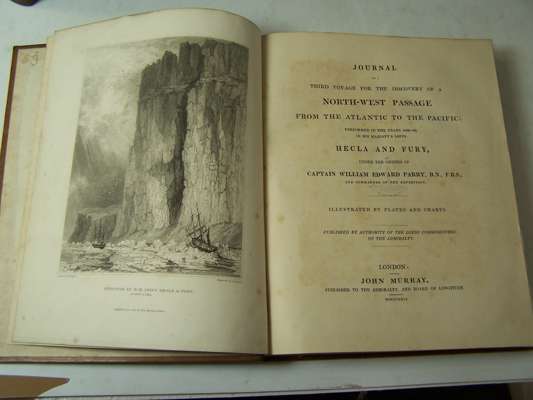 Journal of a voyage for the discovery of a Northwest Passage from the Atlantic to the Pacific. London: John Murray, 1821. Second edition, 4to, 6 maps [including frontispiece], 14 plates, Northern Lighthouse stamp to reverse of title, some light foxing; [Idem] Journal of a second voyage for the discovery of a North-West Passage. London: John Murray, 1824. 4to, 31 maps and plates, 8 folding maps and plates at rear, Northern Lighthouse stamp to reverse of title, offsetting, some foxing; [Idem] Journal of a third voyage for the discovery of a North-west passage. London: John Murray, 1826. 4to, 11 maps and plates, Northern Lighthouse stamp to reverse of title, offsetting; [Idem] Narrative of an attempt to reach the North Pole. London: John Murray, 1828. 4to, frontispiece, 3 plates and 3 maps, some light foxing; all uniformly bound in 19th century calf gilt, Northern Lighthouse gilt stamp to backstrips, some rubbing to boards (4)