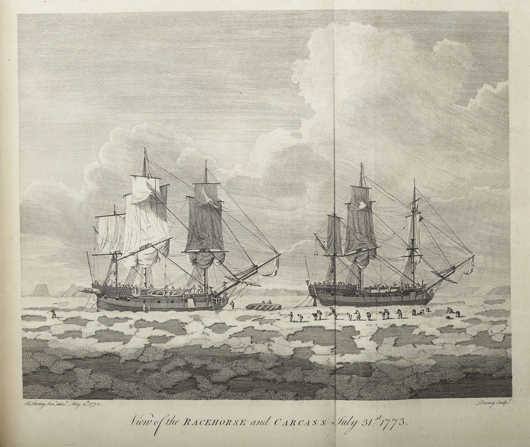 Note: "An important addition to early nautical science in the polar regions. Besides a journal of the voyage, it contains a descriptive catalogue of the natural history and resources of Spitsbergen" (Hill). The fourteen year old Horatio Nelson served as a midshipman, under Captain Skeffington Lutwidge, on board the Carcass, one of the two ships that took part in the expedition. Hill, p.207; Sabin 62572