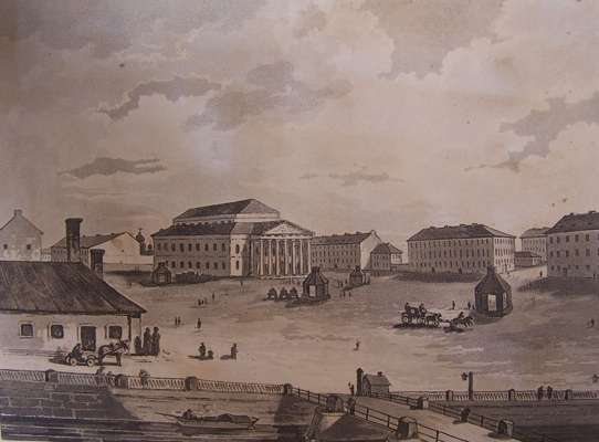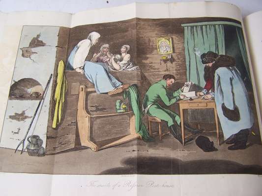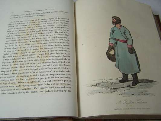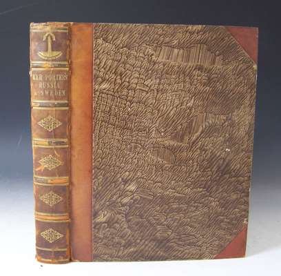 Travelling sketches in Russia and Sweden during the years 1805, 1806, 1807, 1808. London: J. Stockdale, 1813. Second edition, 2 volumes, 4to, [xii, 303; iii-viii, 296], 41 aquatint plates, 28 hand-coloured, 12 sepia, 3 folding, nineteenth century half calf, Northern Lighthouse Board gilt stamp at head of spine, volume 2 lacks half-title, offsetting from plates onto text, short marginal tear without loss to plate 29 and 30, rubbed, joints splitting