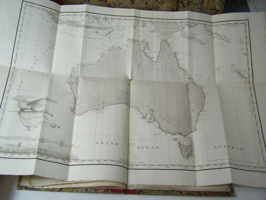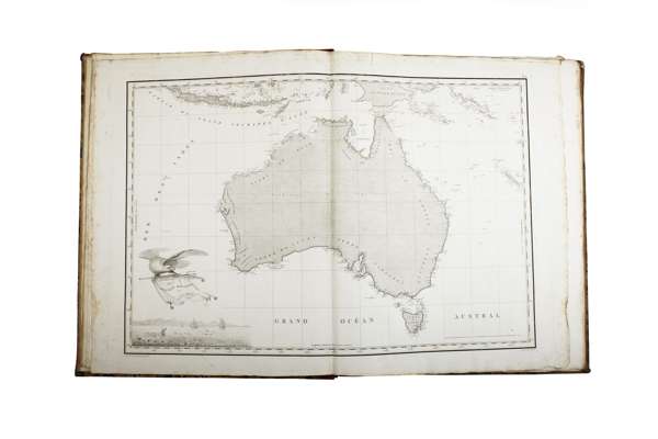 Note: First editions. A very attractive set of the complete account of Nicolas Baudin's expedition to Australia with the first detailed and complete map of the Australian continent. Sent by the French government in 1800, with orders to complete the survey of the coasts of Australia, Baudin employed Péron as a naturalist and Freycinet as cartographer.