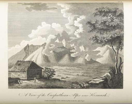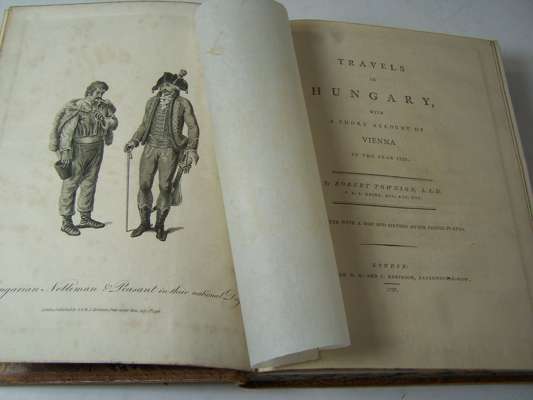 Travels in Hungary, with a short account of Vienna in the year 1793. First edition, 4to, [iii-xviii, [ii], 506], folding map hand-coloured in outline, folding table & 16 engraved plates, nineteenth century calf gilt, Northern Lighthouse Board gilt stamp at head of spine, small piece torn from p.455 with loss of a few letters, 2 plates, map & table laid down on linen, dampstain to one plate, lacks half-title