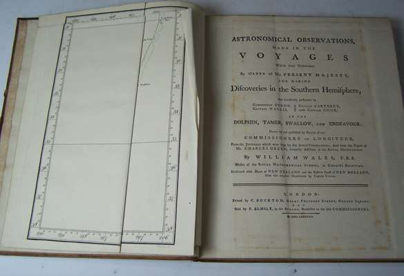 Note: Wales was appointed by the Board of Longitude to accompany Captain James Cook on his second voyage of 1772–75, replacing the astronomer (and Wales' brother-in-law) Charles Green, who had died during the return leg of Cook's first voyage. A major part of Wales' duties was to test Larcum Kendall's K1 chronometer, based on the H4 of John Harrison. Wallis and Carteret had been to the South Pacific in 1766. It was in 1778 that Wales was given the task of producing the official astronomical account of Cook’s first voyage following the death of Charles Green. In order to clarify Green’s accounts earlier observations had to be included, and with Cook’s untimely death during the third Voyage Wales had a mammoth task producing this work without Green or Cook’s assistance. Once published however the information was of great value to seamen. The first edition of 1777 contains four plates and maps.
