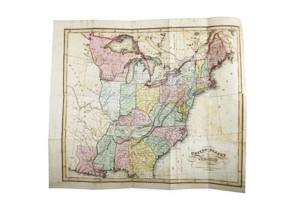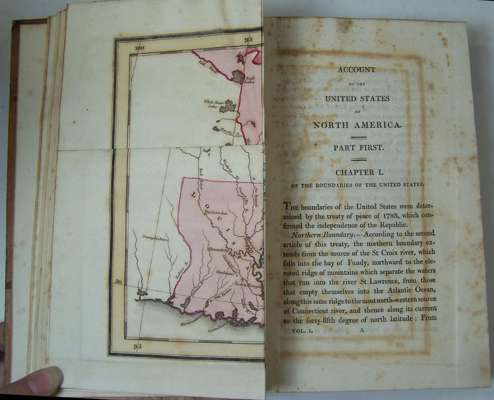 A statistical, political and historical account of the United States of North America. Edinburgh: A. Constable and Co., 1819. 8vo, 3 volumes, half titles, 2 folding maps, one hand-coloured, Northern Lighthouse Board stamps to reverse of titles, contemporary calf gilt, Northern Lighthouse Board gilt stamp to backstrips, hinges cracking, rubbed at edges, foxing and offsetting to maps (3)