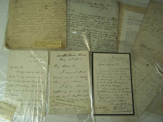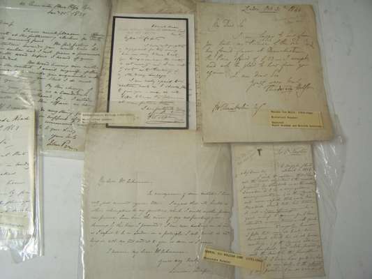 Autograph letter signed to D. Colnaghi [print dealer], dated 15th April 1858, single sheet; Pye, John Autograph letter signed to William Carpenter, dated Jan. 21st 1839, single sheet, address on reverse; Topham, Francis William Autograph letter signed to Mr. Carpenter, dated May 1862, single sheet; Newton, Sir William John Autograph letter signed, dated March 1st 1856, four sides of single folded sheet; Wyon, William Autograph letter signed to John Martin [historical landscape painter], dated Nov. 2nd 1834, discussing the work of Richard Yeo, Nathaniel Marchant and William Mulready, two side of a single folded sheet; Holst, Theodor von Autograph letter signed to Mr. Chamberlain, dated Oct. 31st 1840, regarding the sale of a painting, single sheet, addressed on reverse; Duncan, Edward Autograph letter signed, dated May 6th 1861, two side of single folded sheet; Sharpe, Louisa Autograph letter signed to Mr. Ackermann, dated Nov. 14th 1831, regarding the completion of a commission, single sheet; Pollard, Robert Autograph letter signed, dated March 25th 1809, single sheet (9)