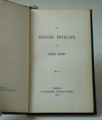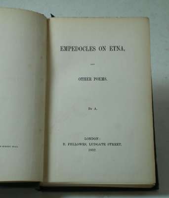 The strayed reveller. London: B. Fellowes, 1849. First edition, 8vo, half title, original green cloth gilt, interior clean; [Idem] Empedocles on Etna. London: B. Fellowes, 1852. First edition, 8vo, half title, original green cloth gilt, contemporary ink inscription to front free endpaper (2)