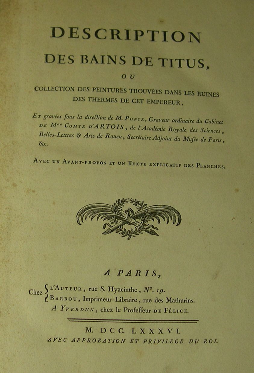 Description des bains de Titus. Paris: l'auteur & Barbou, 1786. Large folio, 40 plates on 34 (of 50) leaves only, nineteenth century quarter calf, a few plates lightly spotted, rubbed