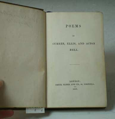 Poems by Currer, Ellis & Acton Bell. London: Smith, Elder & Co., 1846. First edition, second issue, 8vo, errata slip, 1pp. of adverts at rear [undated], contemporary green cloth gilt, some fading to backstrip, inner hinge weak, 19th century ink inscription on front endpaper