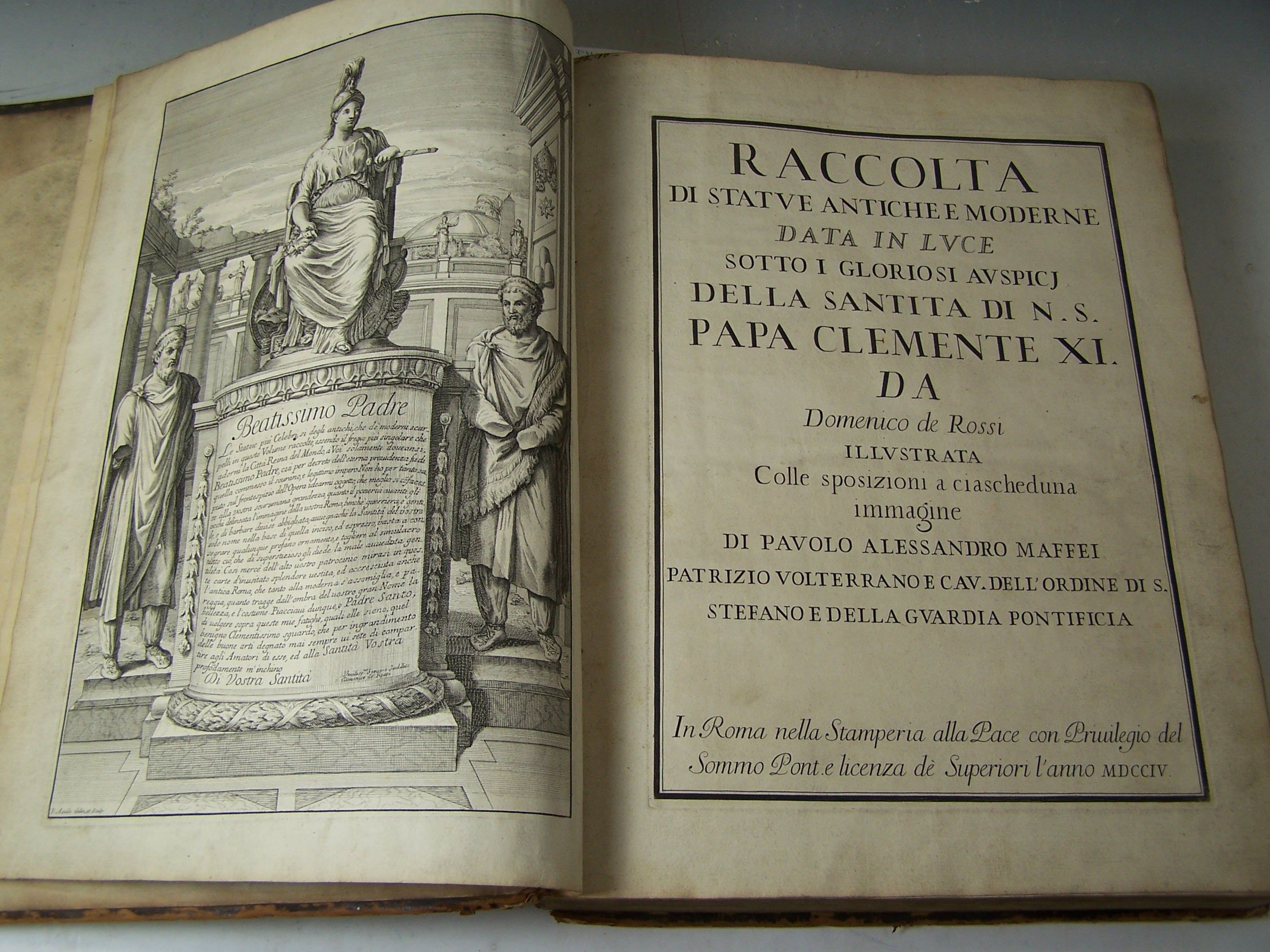 Raccolta di statue antiche e moderne. Rome: Stampera alla Pace, 1704. Folio, engraved frontispiece, title and 161 (of 163) plates , engraved head- and tail-pieces, and initials, contemporary calf, some slight spotting, a few upper corners at beginning and end slightly dampstained, binding worn and slightly scraped