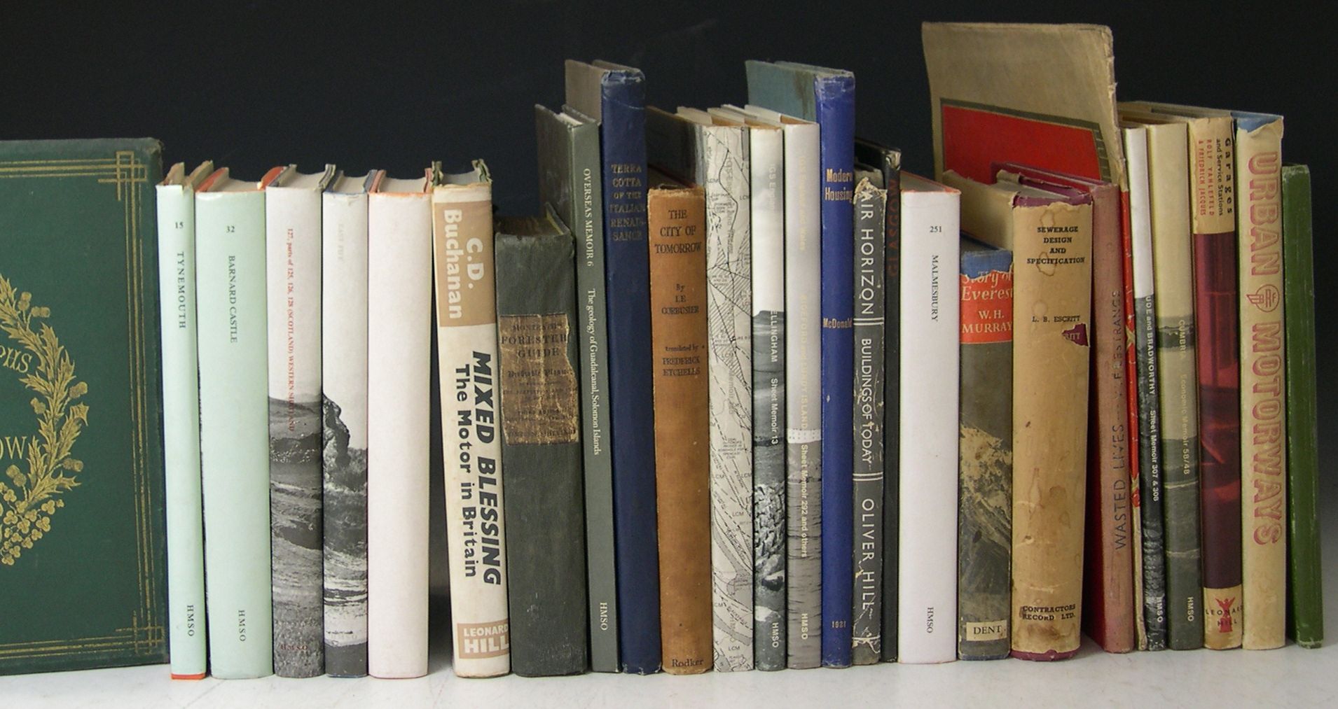 The city of tomorrow. 1929. 4to; Hill, O. Fair horizon. Buildings of today. 1950. Dust-jacket; Geological Survey of Great Britain Geology of the country north of Derby. 1979; [Idem] Geology of the country around Bellingham.1980; [Idem] Geology of Bideford and Lundy Island. 1979; [Idem] Geology and hematite deposits of South Cumbria. 1977; [Idem] Geology of the country around Bude and Bradworthy. 1979; [Idem]Geology of the country around Barnard Castle. 1976; [Idem] Geology of Western Shetland.1976; [Idem] Geology of East Fife. 1977; Idem Geology of the country around East Retford. 1973; [Idem] Geology of the Malmesbury district. 1977; [Idem] Geology of the Tynemouth district. 1974; this series 4to or 8vo, all with dust-jackets McDonald, J.R.H. Modern housing. Glasgow, 1931. 4to; Hanbury, A. Advanced studies of flower painting. 1885. 4to, 12 chromolithographed plates, original cloth; Buchanan, C.D. Mixed blessing. The motor in Britain. 1958. Dust-jacket; Monteath, R. The forester's guide and profitable planter. 1836. 8vo, 16 engraved plates, folding table, original cloth, upper hinge broken; Terra Cotta Association Terra cotta of the Italian Renaissance. 1928. 4to; Forbes, Rev. A.G. and Thomas Annan Photographs of Glasgow. Glsagow, [c.1850] 4to, 12 mounted albumen prints, original green cloth gilt, slightly rubbed; and 9 others (28)