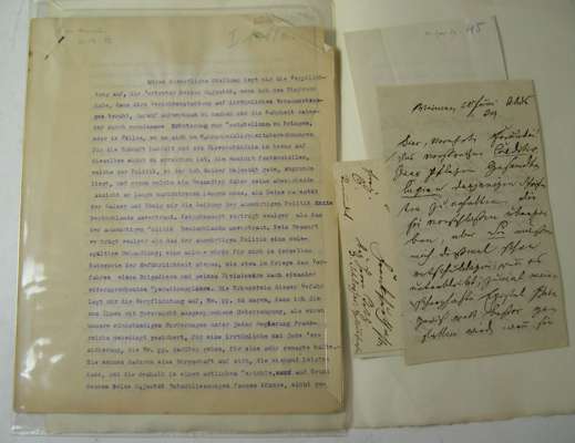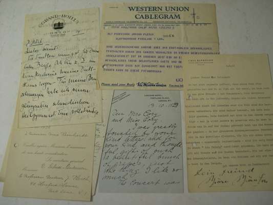 Report of archaeological survey work in the north-west frontier province and Baluchistan. Peshawar, 1905. Folio, 13 plates, 5 plans, original boards, soiled & worn; several unrelated letters loosely inserted; Victory stamp album, 1945 (incomplete); 2 typed letters (1936) & telegram in German to Max Reinhardt, calling card & several other items; Letter from Frederick Delias to Miss Cory thanking her for her kind letter, 13.10.1929, ; & to Catherine Goodson; several miscellaneous French & German letters, 4 place cards, M. Wigglesworth letters, 1 item relating to B. von Arnim; German recipe book, c.1850, &c. (quantity); sold not subject to return