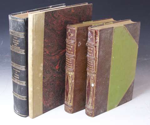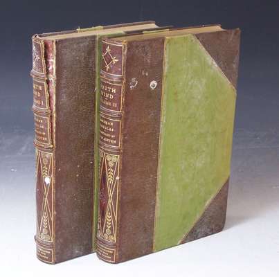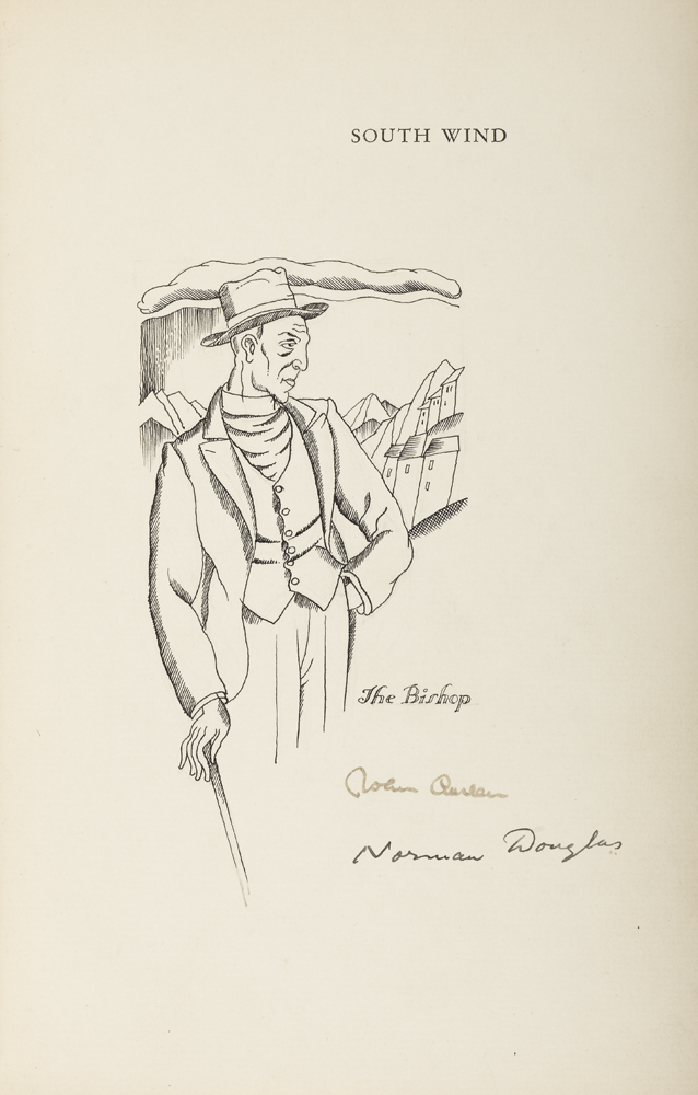 South wind. Chicago: Peacock Press, 1929. 8vo, 2 volumes, number 12 of 40 copies, signed by the artist and the author, original illustration by Austen of The Bishop, contemporary half morocco gilt, section of spine on volume I loose, dampstaining to morocco and early leaves in both volumes; Lawrence, D.H. The man who died. London, 1935. 4to, illustrated by John Farleigh, original cloth backed boards, dampstaining; Poe, Edgar Allan Tales of mystery and imagination. New York, 1933. 8vo, illustrated by Harry Clarke, tipped in frontispiece [loose], plates, contemporary half morocco gilt, dampstained boards and leaves; Cresset Press & O'Hara John Sermons and soda-water. London, 1961. 8vo, 3 volumes, number 290 of 500 copies, signed, original vellum backed boards, some damp marking; and 13 others. Sold not subject to return. (20)