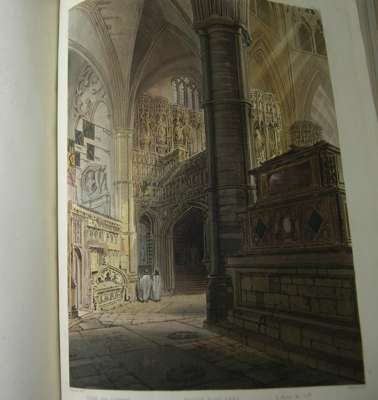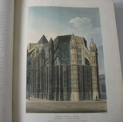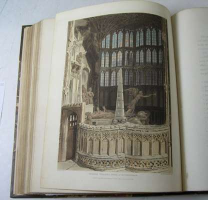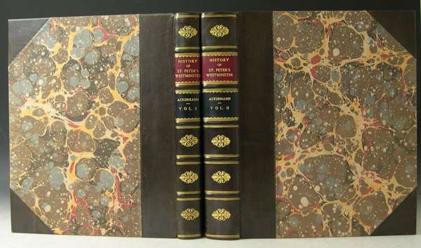 The history of the abbey church of St. Peter's Westminster, its antiquities and monuments. London: R. Ackermann, 1812. First edition, 2 volumes, 4to, list of subscribers, engraved plan, portrait and 81 hand-coloured aquatint plates by J. Bluck, J. Hamble, T. Sutherland & others after A. Pugin, F. Mackenzie, H. Villiers &c., attractive period style half calf, spines gilt, red and black morocco lettering pieces