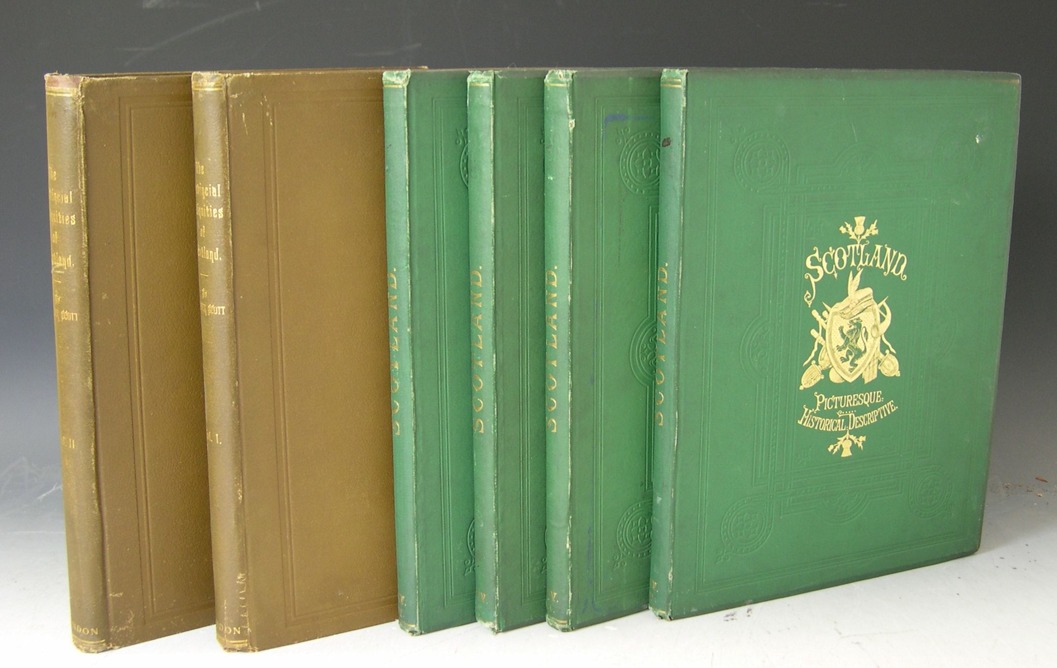 Scotland, picturesque, historical and descriptive. London: John G. Murdoch, [no date]. 4to, 4 volumes, 72 chromo-lithograph plates, original green cloth gilt, some rubbing to edges; Scott, Sir Walter Provincial antiquities and picturesque scenery of Scotland. London: John and Arthur Arch, 1826. 4to, 2 volumes, 52 plates, original brown cloth gilt, some rubbing to edges, inner hinges strengthened, bookplates (6)
