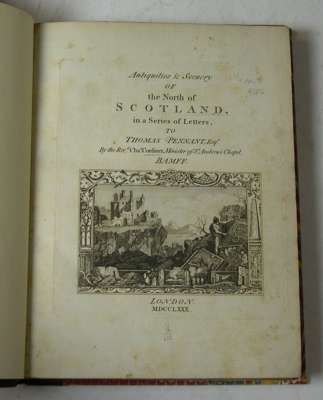 A tour in Scotland. London: Benj. White, 1790-74-76. Mixed edition, 4to, 3 volumes, folding map, 134 engraved plates, later half morocco gilt, interiors clean; Cordiner, Rev. Charles Antiquities and scenery of the North of Scotland in a series of letters to Thomas Pennant. London, 1780. 4to, engraved vignette title, 21 engraved plates, modern calf backed boards, later endpapers, some spotting to title (4)