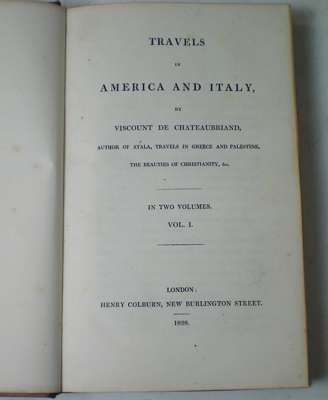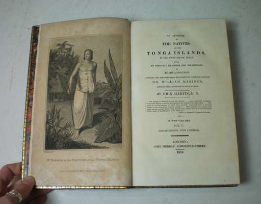 An account of the natives of the Tonga Islands in the South Pacific ocean. London: John Murray, 1818. Second edition, 8vo, 2 volumes, folding map, frontispiece [browned], contemporary calf gilt, section of backstrip to volume I lacking, some rubbing to edges; Chateaubriand, Viscount de Travels in America and Italy. London: Henry Colburn, 1828. 8vo, 2 volumes, contemporary calf gilt, some light spotting to endpapers, bookplates (4)